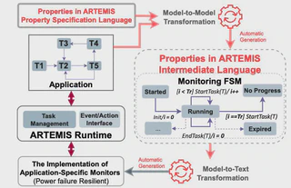 Batteryless energy harvesting devices compute intermittently due to power failures that frequently interrupt the computational activity and lead to charging delays. To ensure functional correctness in intermittent computing, applications must exhibit several unique properties, such as guarantees for computational progress despite power failures and prevention of stale operations caused by charging delays. We observe that current software support for intermittent computing allows for checking only a fixed set of properties and leads to tightly coupled application and property-checking, thus hampering modularity, scalability, and maintainability. In this paper, we present ARTEMIS, the first framework designed to facilitate flexible property checking of intermittent programs at runtime. ARTEMIS is developed based on techniques from the area of runtime monitoring, offers a specification language for specifying an open set of properties, and provides automatic generation of monitors responsible for checking the properties. Our evaluation showed that ARTEMIS achieves comparable efficiency to state-of-the-art solutions while significantly preventing failure scenarios through its monitoring capabilities.